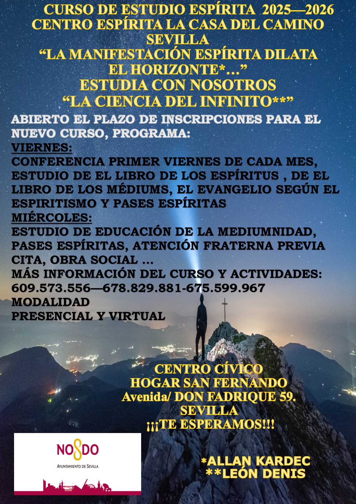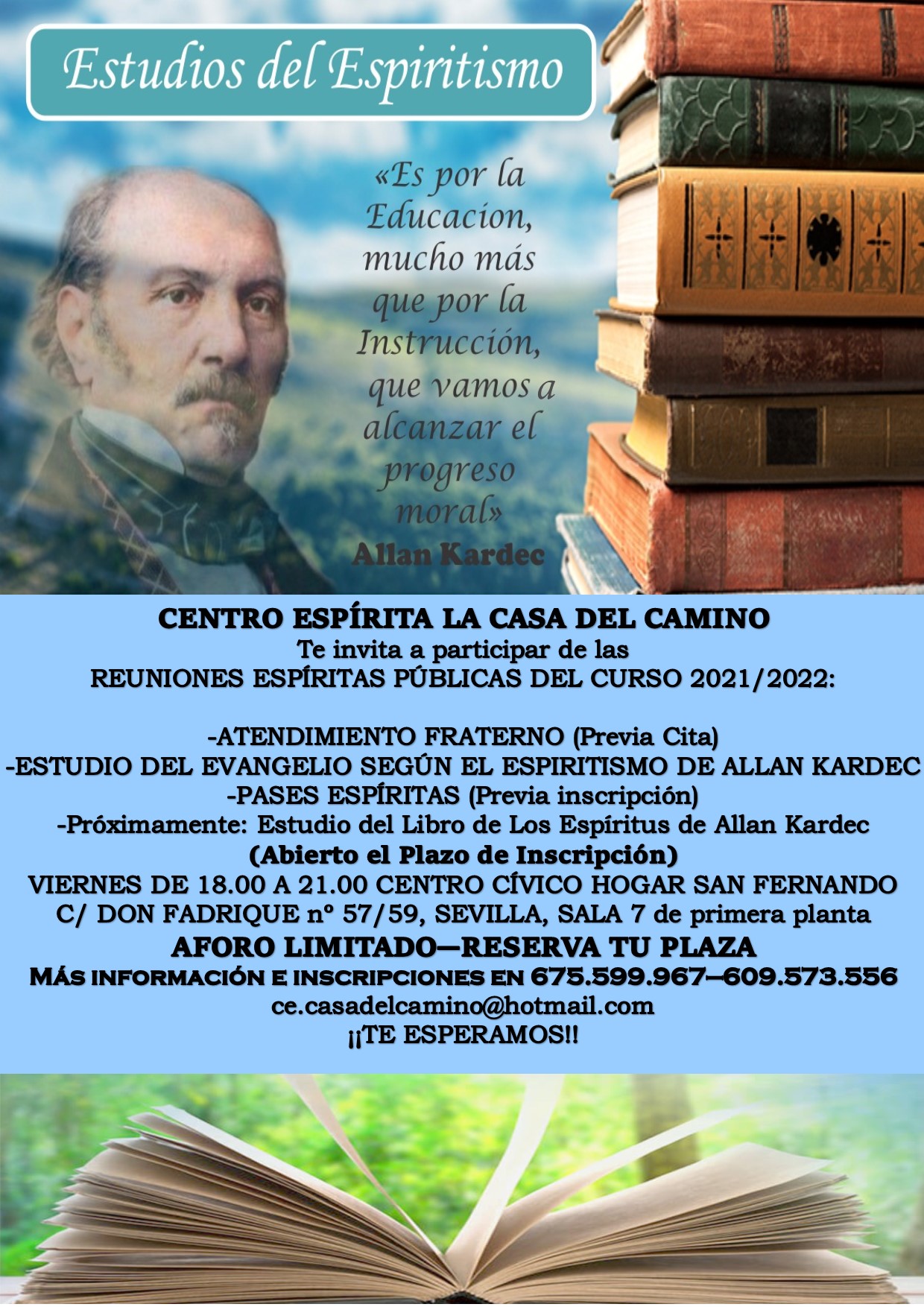 CONFERENCIA PRIMER VIERNES DE CADA MES, ESTUDIO DE EL LIBRO DE LOS ESPÍRITUS , DE EL LIBRO DE LOS MÉDIUMS, EL EVANGELIO SEGÚN EL ESPIRITISMO Y PASES ESPÍRITAS